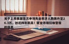 关于上周美国首次申领失业救济人数飙升至26.3万,创近四年新高!就业市场拉响警报的信息
