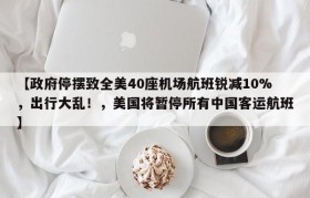 【政府停摆致全美40座机场航班锐减10%,出行大乱!,美国将暂停所有中国客运航班】