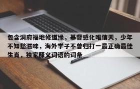 包含洞府福地修道缘,基督感化唯信天,少年不知愁滋味,海外学子不曾归打一最正确最佳生肖,独家释义词语的词条