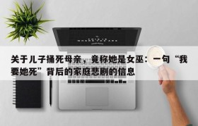 关于儿子捅死母亲,竟称她是女巫:一句“我要她死”背后的家庭悲剧的信息