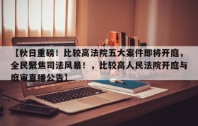 【秋日重磅!比较高法院五大案件即将开庭,全民聚焦司法风暴!,比较高人民法院开庭与庭审直播公告】